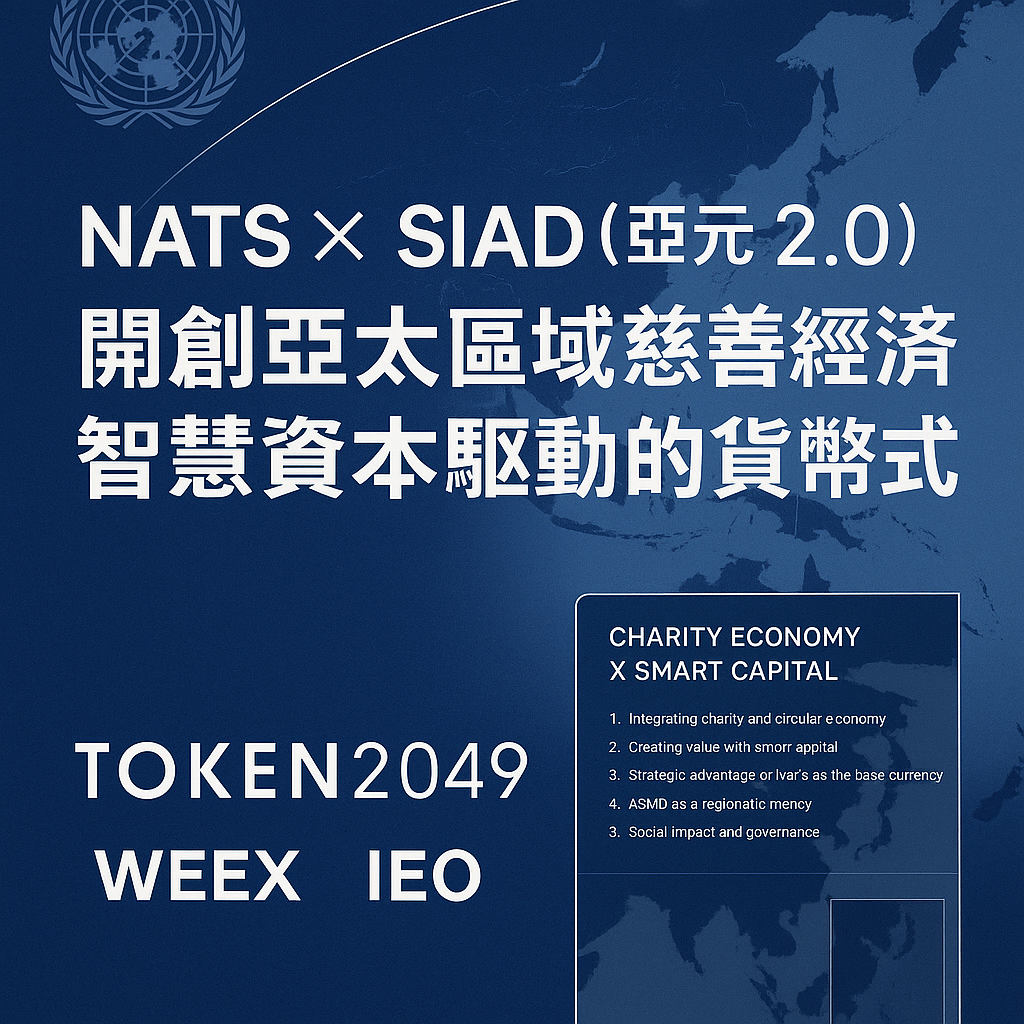 ASIAD(亚元2.0)是一个针对亚太地区的数字货币愿景,以NATS(国家主权精神艺术珍宝)作为其母币,由全球慈善经济数字银行(GCEDB)和全球慈悲智慧和平联盟(GCWPA)等组织推动,强调以“慈善经济智慧资本”模式实现可持续发展目标(SDGs)。该计划利用区块链技术、人工智能和去中心化治理,促进经济整合、降低跨境交易成本并推动社会公益。该概念由Frank Chen提出,与IAE国际学士院全球产学研中心合作联盟,NATS起源于1997年,ASIAD则于2024-2025年进一步发展。NATS预计于2025年10月30日在WEEX交易所上市,初始价格约2美元(总发行量1亿枚,50%长期锁住或分配至慈善经济体系生态系统)。