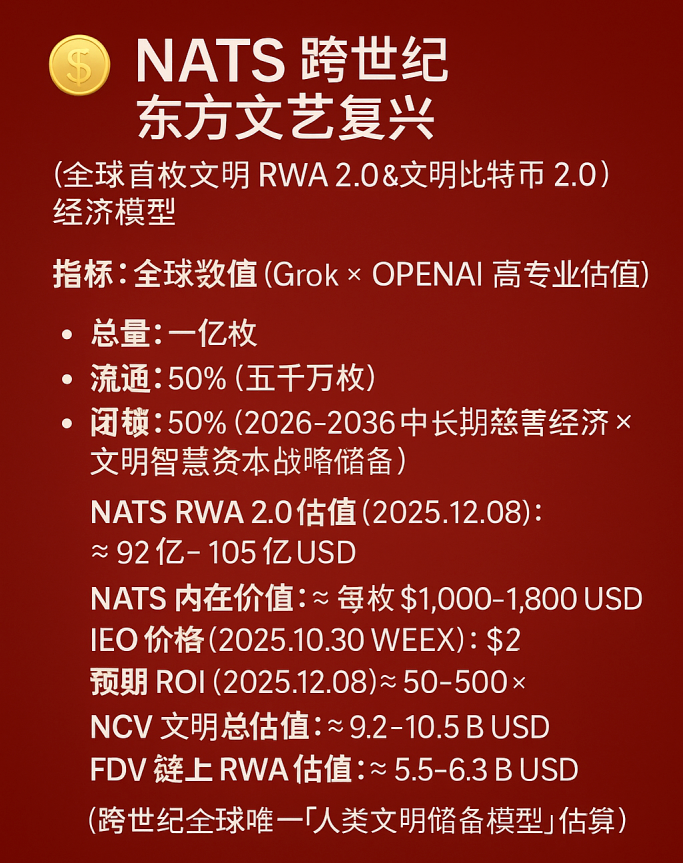💰 NATS 跨世紀東方文藝復興〔全球首枚文明RWA2.0暨文明比特幣2.0〕經濟模型
