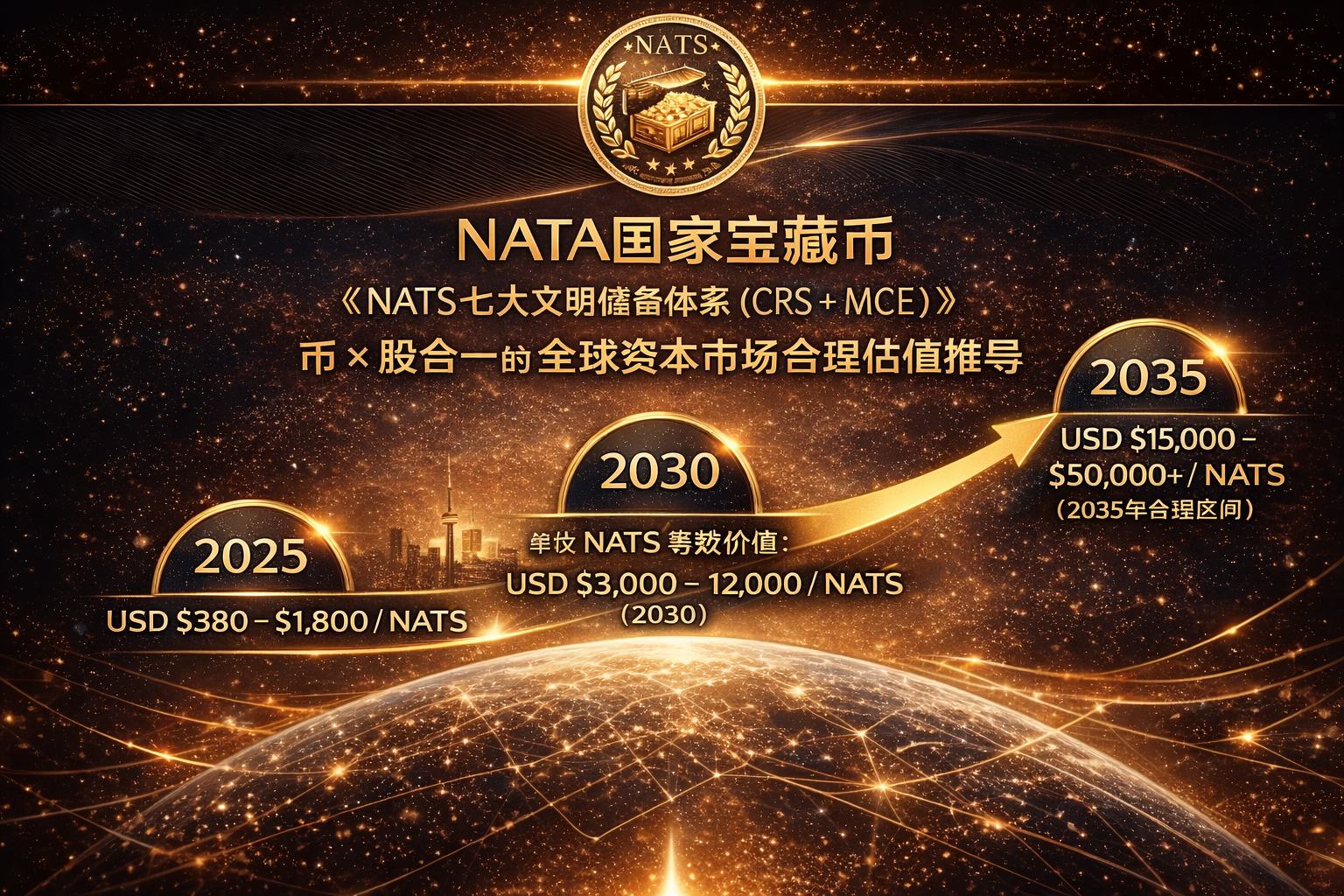 NATA 国家宝藏币《NATS 七大文明储备体系(CRS + MCE)》币 × 股合一的全球资本市场合理估值推导(2025 / 2030 / 2035)