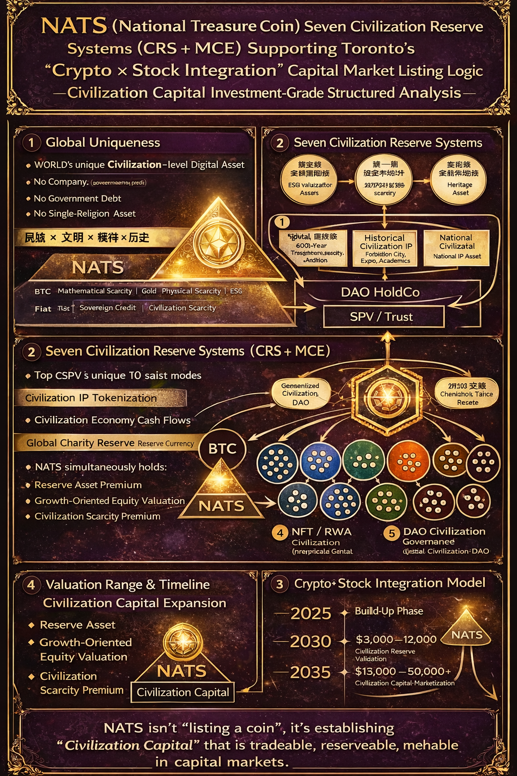 NATS (国家宝藏币)七大文明储备体系(CRS + MCE)支撑加拿大多伦多「币 × 股合一」资本市场上市逻辑——文明资本(Civilization Capital)投资级结构化分析**