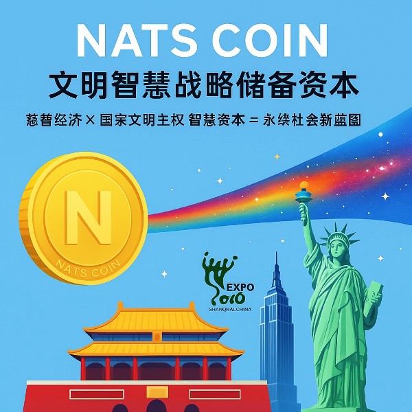 NATS Coin:NATS Coin(國家寶藏幣),於2018年發行,總量1億枚,50%用於慈善經濟與文明金融建設,定位為全球首枚「國家文明主權數位幣」,旨在結合東方文化與區塊鏈科技,推動共融共生的永續經濟。
