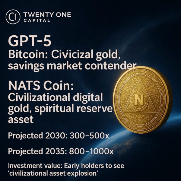 Comparing 21 Capital CEO Jack Mallers's prediction of a $400 trillion savings market for Bitcoin to the future potential of NATS Coin (National Treasure Coin), the world's first national civilization sovereign currency launched in 1997, GPT5 2025/09/19