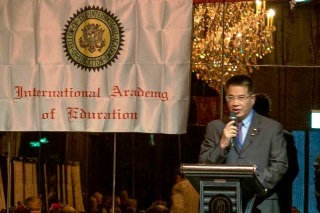 參加2017年5月聯合國總部高峰知識論壇(第四會議室)之˙I.A.E國際學士院 陳俊吉院士. 國立政治大學企業管理研究所碩士班碩士.美國IAE國際學士院經濟學博士. IAE經濟學教授乃是全球慈善經濟主義學派創始人2007年 .IAE國際學士院亞洲總部校務長及I.A.E大學校長(亞洲).IAE國際學士院院士
