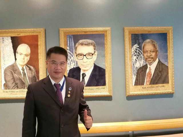 聯合國總部緣起全球慈愛‧智慧‧和平聯盟(GCWPA)主席陳俊吉教授,同時是國際學士院I.A.E校務長‧院士台灣數十年唯一於2017.05.23代表參與聯合國總部全球新經濟高峰論壇 國際學士院I.A.E校務長 陳俊吉院士 · 國立政治大學 企業管理研究所碩士班畢·美國國際學士院I.A.E經濟學博士.I.A.E經濟學教授乃是全球慈善經濟主義學派創始人2007年 .IAE國際學士院亞洲總部校務長及I.A.E大學校長(亞洲).IAE國際學士院院士.